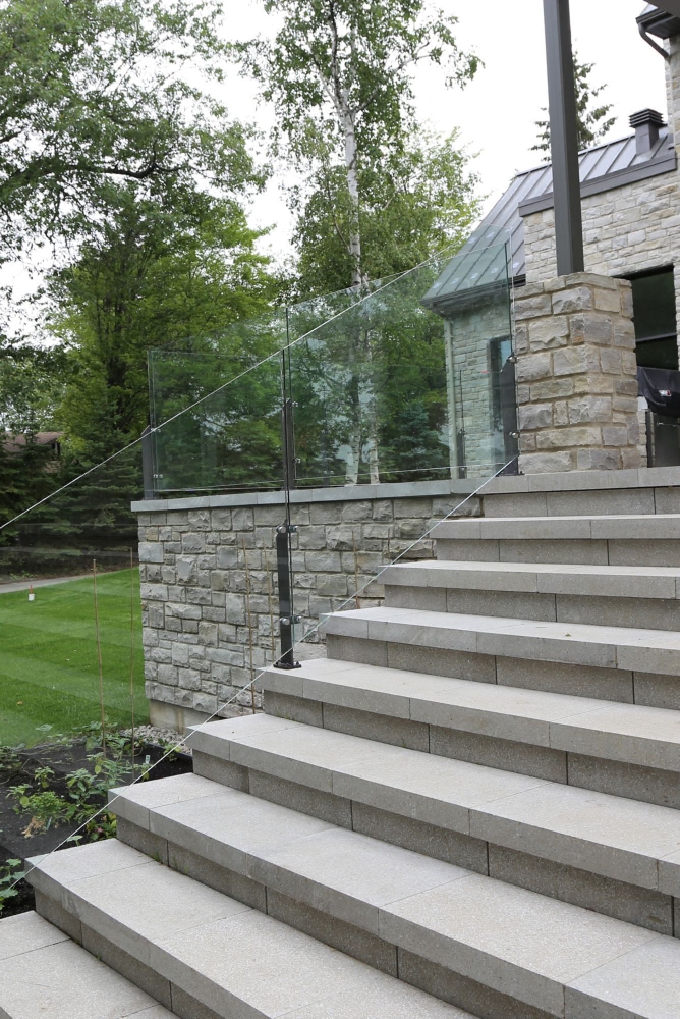 Rampe avec poteau en aluminium et verre trempé